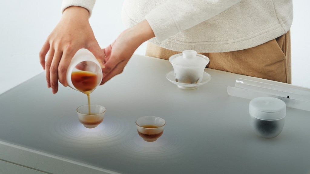 In this project, three design students created an interactive table designed to create an extra-worldly atmosphere. The table interact with the objects on the surface by showing ripples and swimming light spots.