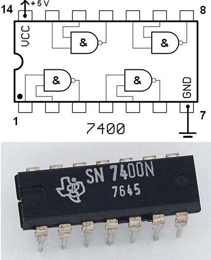 TTL 電晶體-電晶體邏輯是一種邏輯閘,由一組電晶體(transistor)的電路構成。以GND作為通訊的參照基準,當訊號落於0-0.8V會判定為LOW,而為2-5V時則為HIGH。實務中,我們可以找到TTL的IC元件74系列/54系列,