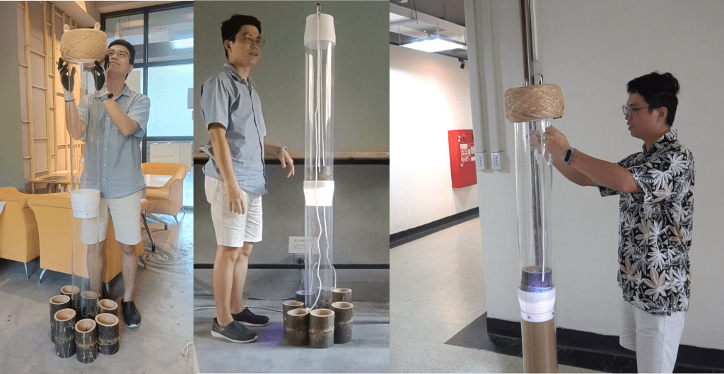 The students also learned about the bamboo material and the skill of interactive prototyping with Arduino and the production of electric circuits. Finally, in an 18-week project, students presented their interactive installations as part of the landscapes that tell visitors about the stories of this rural area.