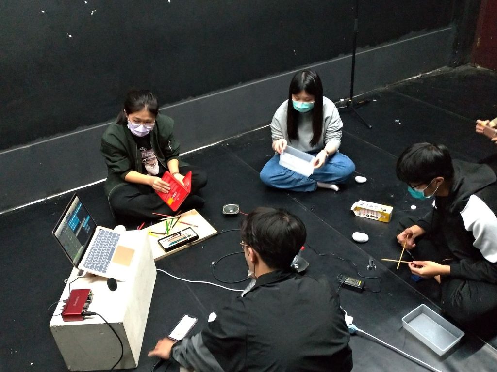 本工作坊為成大美學學程之系列課程,並與藝術家張君慈老師協作教學。在課程中,我們從聲音的聆聽策略出發,透過打開感官、解放身體拘束,進行聲音/音樂的即興創作與展演。